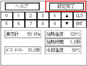 シール方式、脱気/ガスに関する設定値に関しては、液晶パネルの表示通りに動作します。