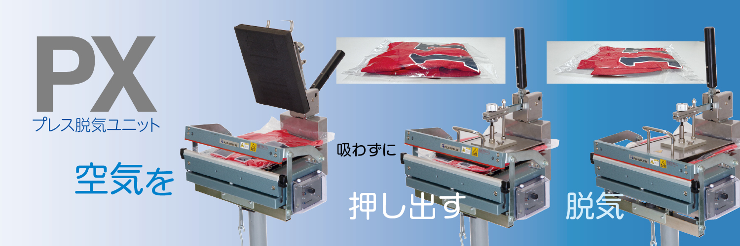 プレス脱気ユニットPXは、輸送コストの負担を、輸送物の体積を減らして軽減させたいと言うご要望にお応えするオプション製品です。