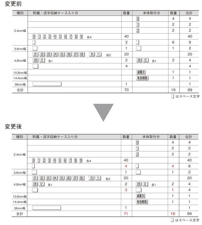 ■6ページ:OPL-350-MDS:附属活字明細に以下の変更を行いましたので、ご報告致します。
