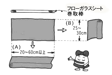 フローガラスシートを製品のシール長さ(上記イラストAの方)の方向から巻きますと