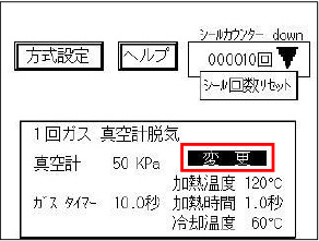 シール方式、脱気/ガスに関する設定値に関しては、液晶パネルの表示通りに動作します。