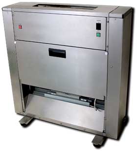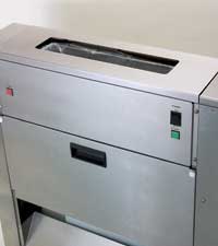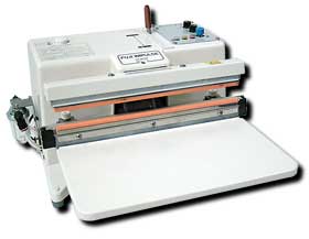 雨の日の新聞など、濡れを防止しなければならないものはいくつかありますが、こうした用途などを視野に入れ開発したのが縦型シーラー「オンリープットシーラー」です。上部の投入口から被包装物を投入すると、自動的に袋に密封された状態になり、シーラー下部の取り出し口にシールされた状態で排出されます。