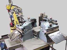 展示会への出品は、インデックステーブルのみとなり、ロボットについては写真でご覧いただく予定です。インデックステーブル上のシーラーおよびアームロボットは別売品となります