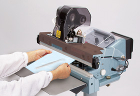 富士インパルス:メディカルシーラー:OPL MDシリーズは、フィルムが袋の一方だけにある滅菌バックなどの包装資材を確実にシーリングできるよう片側上部加熱式を採用した電動シーラーです。