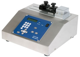 PTT-100は滅菌バッグなどのシール強度測定を行います。一定速度:300mm/minで測定します。(JIS Z0238)