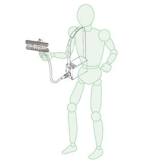 肩からさげる制御部は3.0 kg(充電池:1.3 kgを含む)と言う軽量なシーラーです。