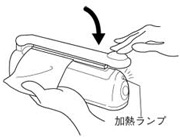 2 圧着レバーを片手で押さえると加熱ランプが点灯します。
