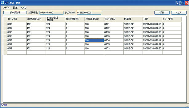 測定したシール作業データを表形式でパソコン画面に表示できますので、視覚的にデータを維持・管理していただくことが可能です。