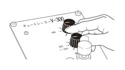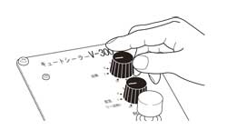 「加熱」ツマミを回して設定します。(0.1~2.3秒の範囲)