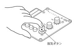脱気が終了すれば、すばやく右手でノズルレバーを元の"「シール」の位置"に移動させ、左手でもう一段テーブルを押し下げます。