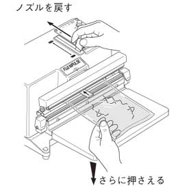 3 内容物が固形物の場合、脱気した時にフィルムが密着してノズル口をふさぐ場合がありますので内容物をできるだけノズルの吸い込み口に近づけます。