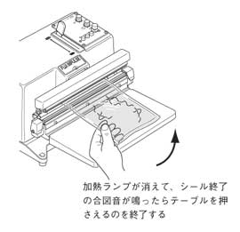 加熱ランプが消え「ピッ」と合図音が鳴るまで、テーブルを押えたままの状態を維持してフィルムを冷却し、固めます。