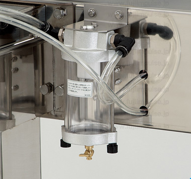 高圧縮空気をノズルの中で機械外部排出側の方向に噴射するとノズル内全体がその方向に引っ張られる空気の流れが生じる現象が発生します。イジェクター脱気方式はその現象を利用したものです。