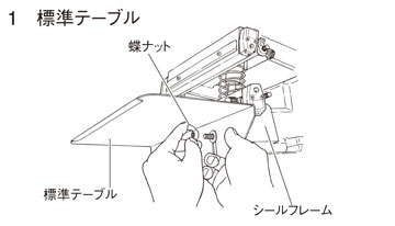 シールフレームに蝶ナットとボルトで固定してください。作業しやすい高さに微調整できます。