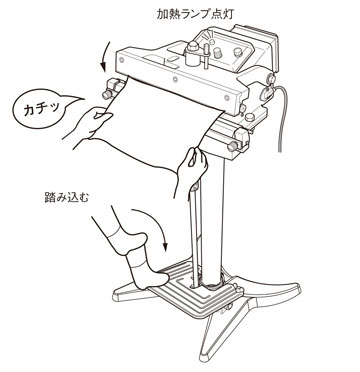 加熱・冷却終了後、ペダルを踏むのを終了すると、圧着レバーが上がり、シール完了です。