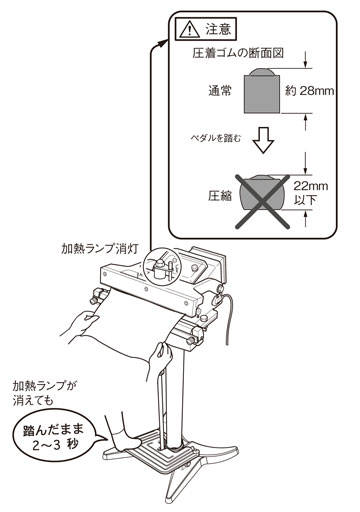 圧着ゴムの高さが22 mm以下に圧縮されるまでペダルを踏み込まないように注意してください。