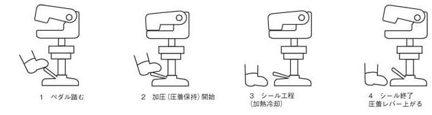 軽くペダルを踏み込むとソレノイドの働きで圧着が保持されます。足踏みシーラーはシール終了までペダルを踏み続けないといけないのですが、PKが装着されていると、この時点でペダルから足を離すことができます!