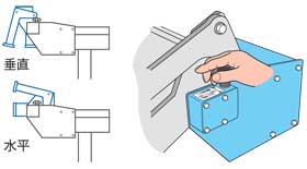 シールを行う部分であるシーラー頭部の角度を調整することができます。シーラー向かって右側にある角度調整の部を手動で回転させることにより調整することができます。