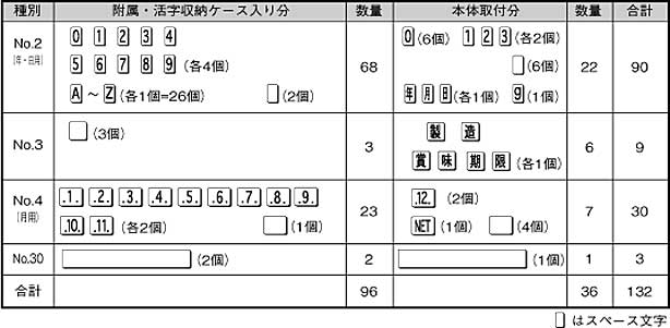 附属活字一覧