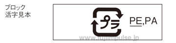 例えば上記印字見本のような容器識別表示(プラマーク)などを印字することができます。