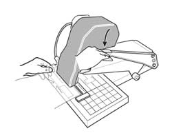 ヒーター部が印字可能な状態に温まれば、ハンドレバーを押し下げて、フィルムに約0.5~1秒押しつけた後レバーを上げると印字ができています。