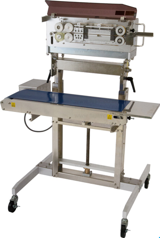 縦型ベルトシーラー132 メンテナンス 頭部最高位置でカバーを開けた状態の全体像写真