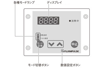 1 コントロールユニットで「加熱温度」「ベルト速度」等を設定します。