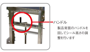 製品背面のハンドルを回してシール高さの調整を行います。