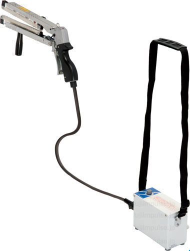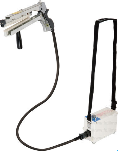 肩からさげる制御部は3.0 kg(充電池:1.3 kgを含む)と言う軽量なシーラーです。