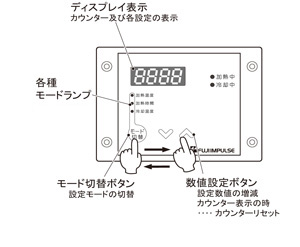 1. コントロールユニットで「加熱時間」「冷却時間」「連続運転・運転間隔時間」等を設定します。