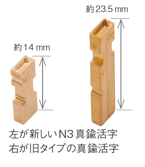N3真鍮活字のサイズは、従来活字の約半分の約14mmです。