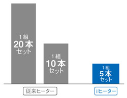 「1組20本」または「1組10本」で販売しておりますヒーターの販売本数(販売単位)をiヒーターは「1組5本」で販売いたします。
