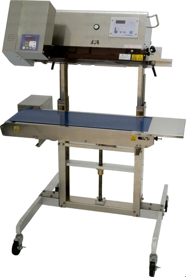 縦型ベルトシーラー133 プリンター装備モデル:シール角度・傾斜状態の全体像写真