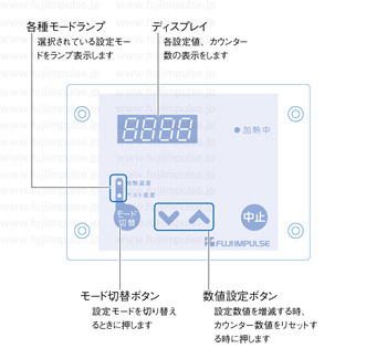 1 コントロールユニットで「加熱温度」「ベルト速度」等を設定します。