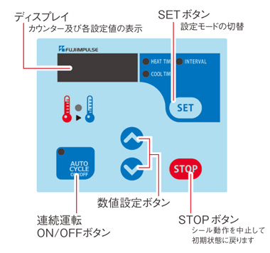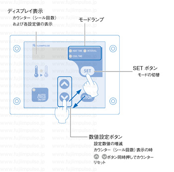3 コントロールユニットで「加熱時間」「冷却時間」「連続運転・運転間隔時間」等を設定します。