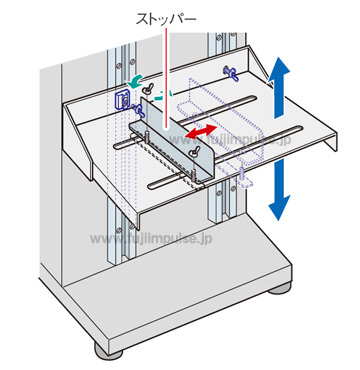 また、横方向にもスライド式のストッパーがありますので任意の位置で固定し、袋のセット位置を一定に保つことができます。作業ごとにシール位置を確認することなく作業を進めることができます。