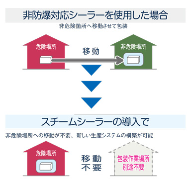 包装作業を行う非危険場所を別途設置する手間とコストを削減することができます。