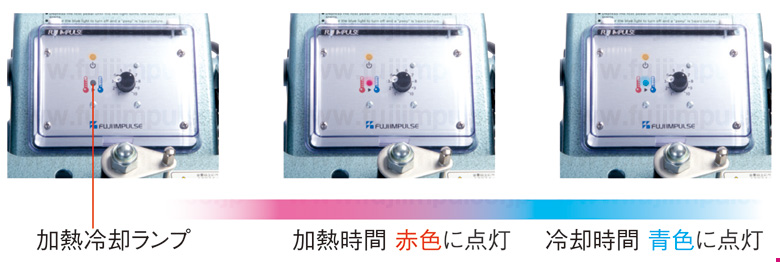 タイマーの加熱冷却ランプが加熱中は赤色に点灯し、加熱終了後は青色に点灯してシールを美しく仕上げるために重要な"冷却時間"を目視で確認できます。