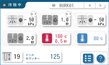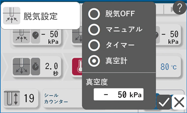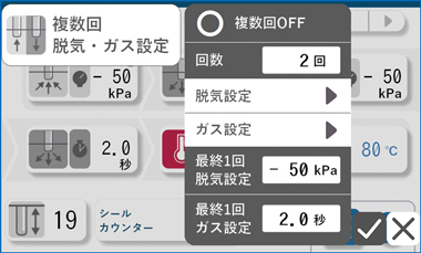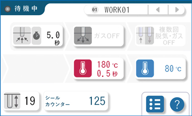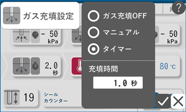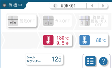 HOME > 製品情報 > シーラー > 脱気シーラー > LNシリーズ > ガス充填オプション搭載仕様機のコントロールパネルのサンプル画像