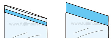 20mm幅のシール(イラスト右)は、5 mm、10 mmシール(イラスト左)と比較して袋端までのシール部分を形成しやすくなります。
