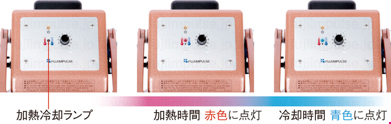 タイマーの加熱冷却ランプが加熱中は赤色に点灯し、加熱終了後は青色に点灯してシールを美しく仕上げるために重要な"冷却時間"を目視で確認できます。