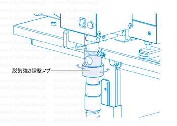1 ノズルユニット下部の調整ノブを回して脱気の強さを調整を行います。