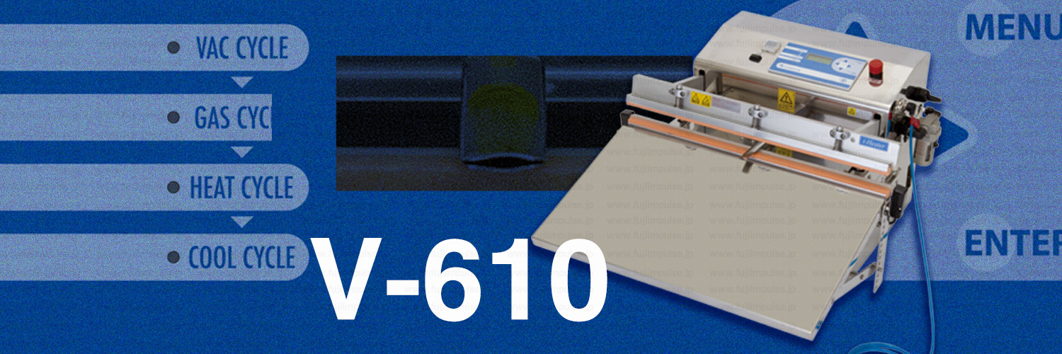 V-610シリーズは卓上型の脱気シーラー(脱気包装機)で、生鮮食品をはじめとする各種食品の鮮度保持、部品・衣類・化学薬品・精密機器などの酸化防止に威力を発揮します。