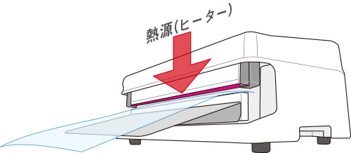 熱源であるヒーターが滅菌バッグを差し込むシール部の上側(圧着レバー側)にあり、
