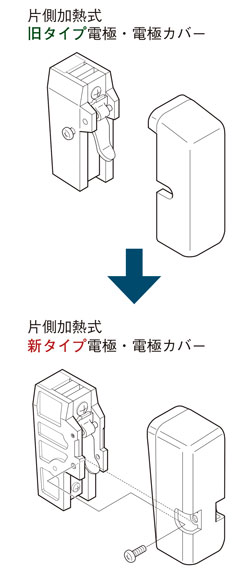 旧タイプ;角型電極及び電極カバーの構成部品の金型の経年劣化が変更の理由のため、今後、旧タイプの部品供給は行うことができません。あしからずご理解のほどお願い申し上げます。