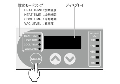 コントロールパネルで加熱温度・加熱時間・冷却温度・真空度を設定します。