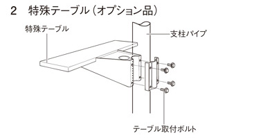 必要に応じて「標準テーブル」「特殊テーブル(オプション品)」を取り付けてください。