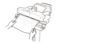袋を両手で持ちシワがなくなるように両手でピンと張りながらシール部へセットしてください。