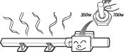 使用される樹脂板の種類や厚みにもよりますが、通常は先に700Wにセットして角パイプの温度を上昇させ、必要な加熱を得られた後に350Wに切り替えて角パイプヒーターを保温状態にして使用します。