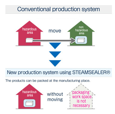 It saves labor and cost for securing non hazardous area separately for packaging work.